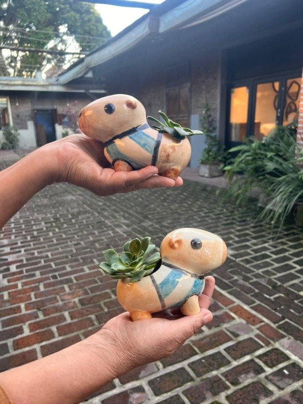 Maceta esmaltada con planta suculenta