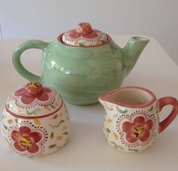 Set de tetera, azucarera y lechera a tono. Cerámia artesanal